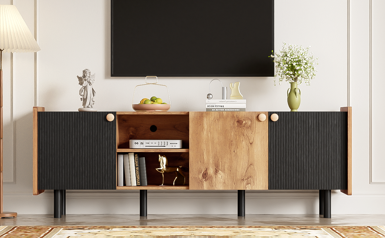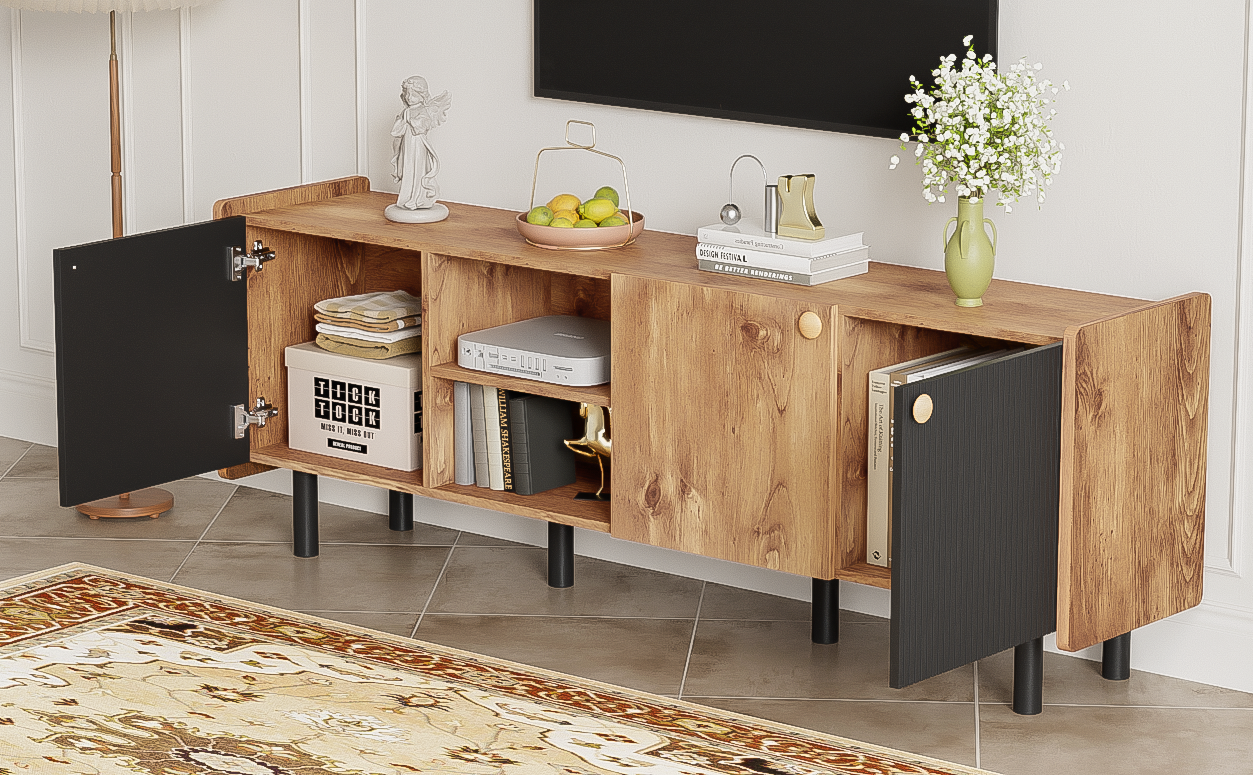 - [Ample Storage] With 3 spacious cabinets and 2 open storage compartments, this TV stand offers ample storage space for all your media essentials, gaming consoles, DVDs, and more.
