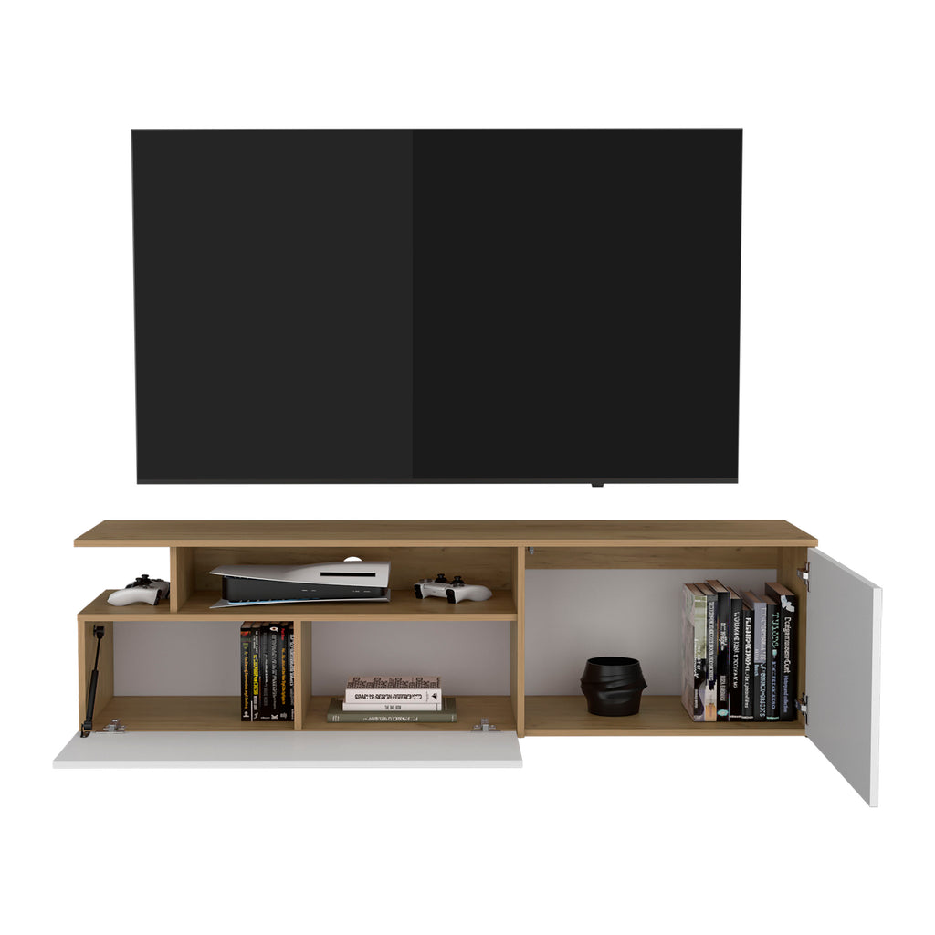 - Floating Design: Modern wall-mounted unit that saves floor space and adds a sleek look to your living room.