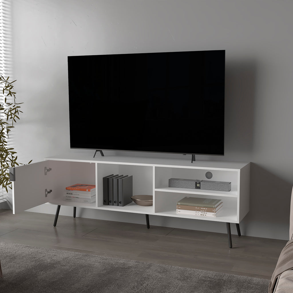 Mescal Tv Stand Multistorage with a Door and Open Storage, White