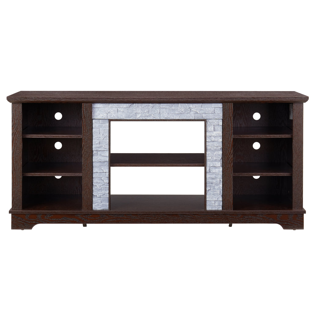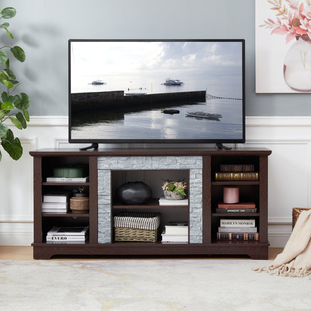 - [Faux stacked stone surround] It gives this TV stand entertainment center a traditional style and with plenty of shelving, you can keep your space neat and tidy.