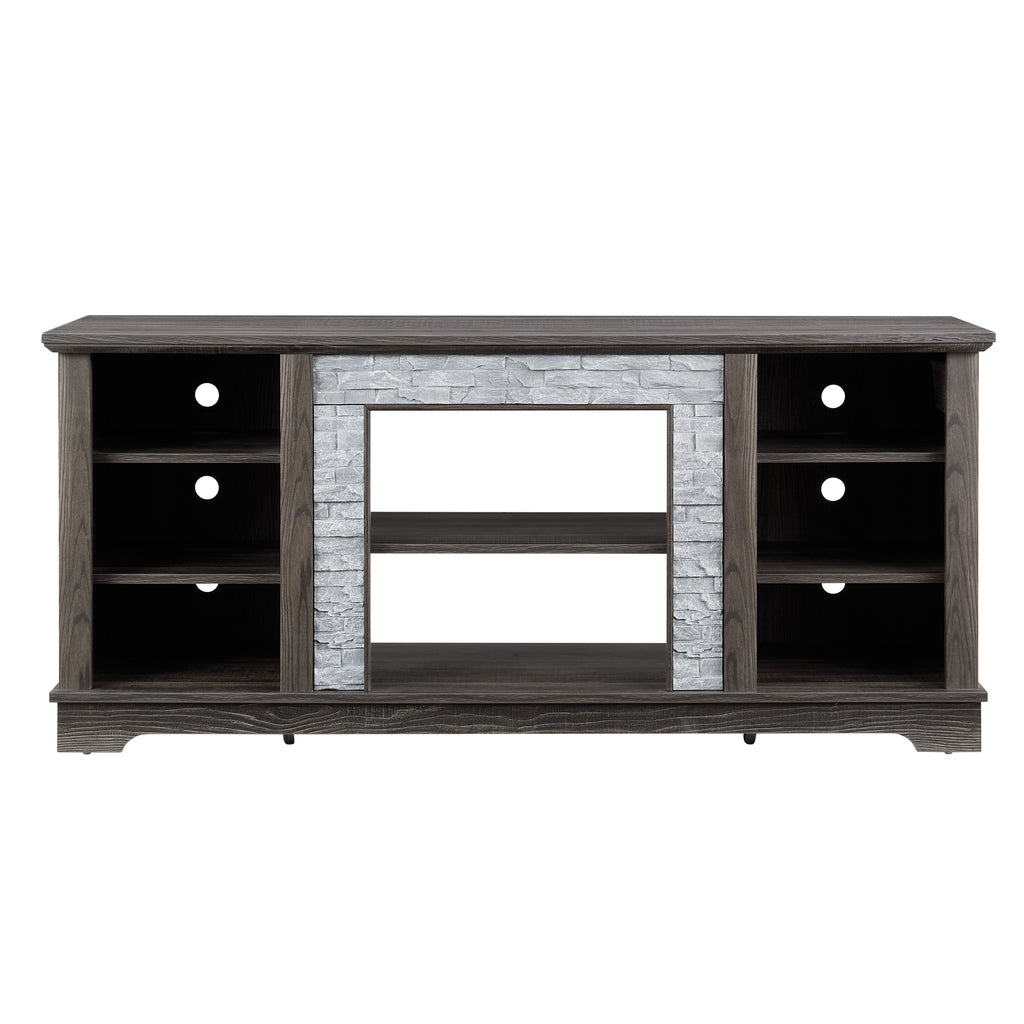 - [Faux stacked stone surround] It gives this TV stand entertainment center a traditional style and with plenty of shelving, you can keep your space neat and tidy.