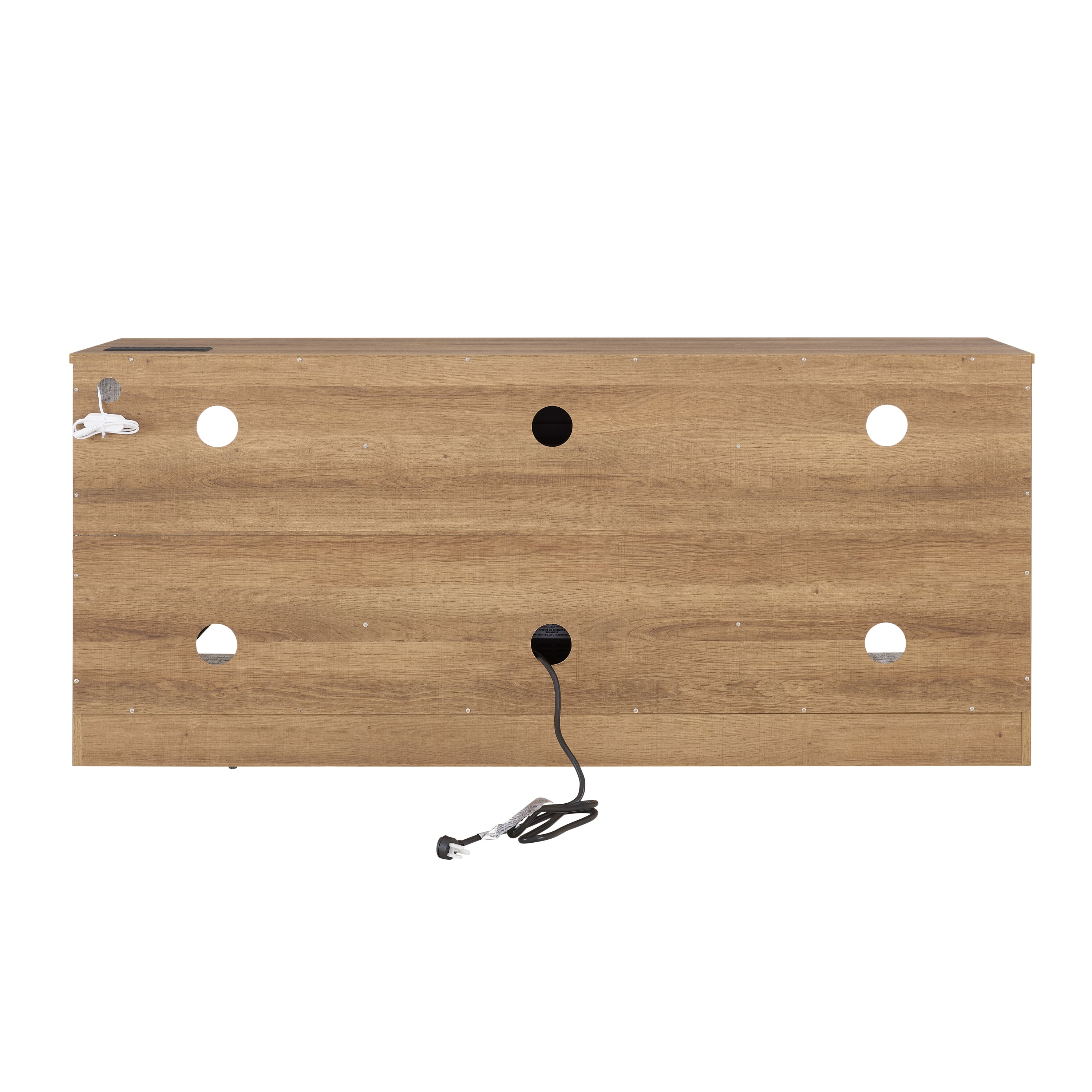 - TV Console with Power Outlets:The top of the TV cabinet provides additional sockets. 2 sockets, and 2 USB ports. The top of the entertainment center is designed with cable holes for storing additional cables. lt can maintain the overall appearance and clean liness of the environment.
