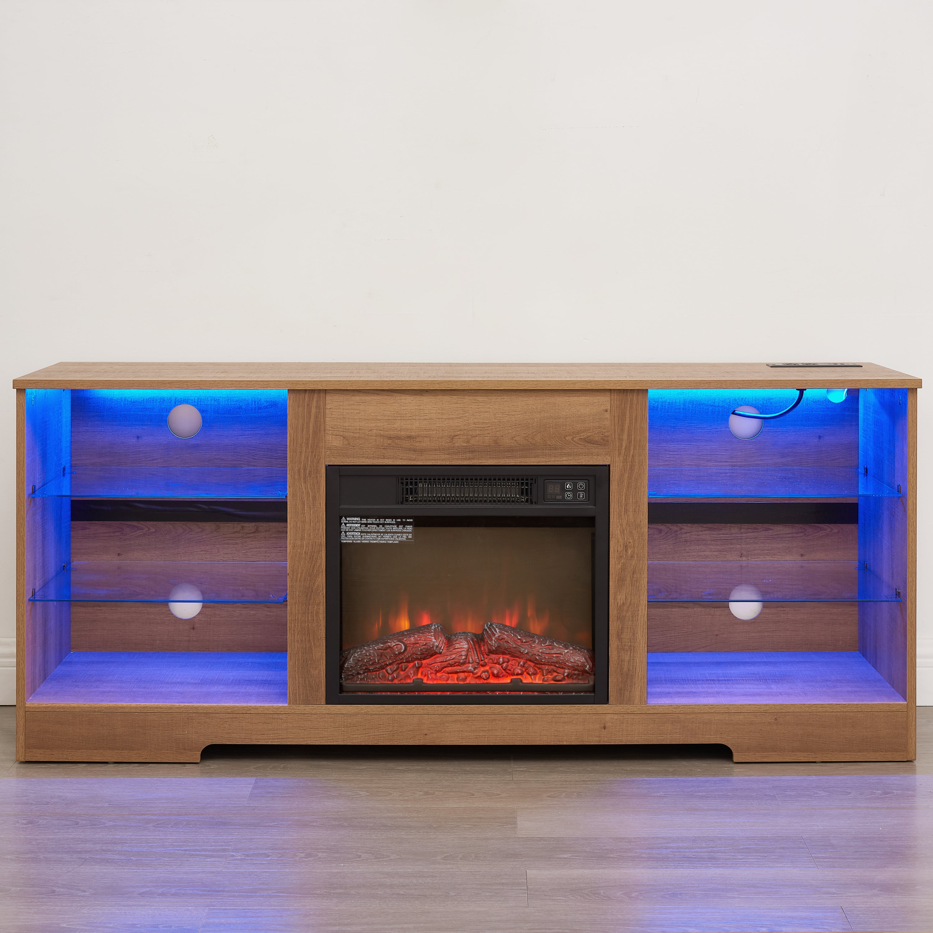 Combine a 58' TV cabinet with a 18' electric fireplace, a tv stand also can become a multifunctional indoor decoration.