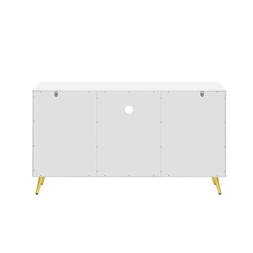 - Crafted from sturdy and durable golden metal, the legs of this TV stand ensure stable support for your television and media equipment. The metallic finish imbues the design with a luxurious texture, elevating the sophistication of your home decor. The unique middle partition design can be used as a display area for decoration and as a layered storage solution, improving space utilization and combining practicality and aesthetics.